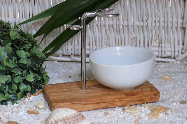 • Am besten gleich nach dem Kauf und dann ab und zu nach der Reinigung den Rasierständer Holz mit ein paar Tropfen Olivenöl (oder Speiseöl) einreiben. So behält das Olivenholz seine schöne Maserung.