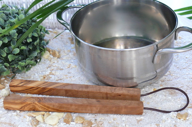 Dieser Topfuntersetzer besteht aus zwei Olivenholz-Stäben, die durch ein Lederband verbunden sind. Dadurch ist der Untersetzer sehr flexibel und passt sich jeder Pfanne, jedem Topf oder jeder Auflaufform an. Dazu ist er äußerst Platzsparend im Schrank. Die beiden Stäbe sind jeweils ca. 20 cm lang. Ein Küchenhelfer den man fast täglich in Gebrauch hat.
