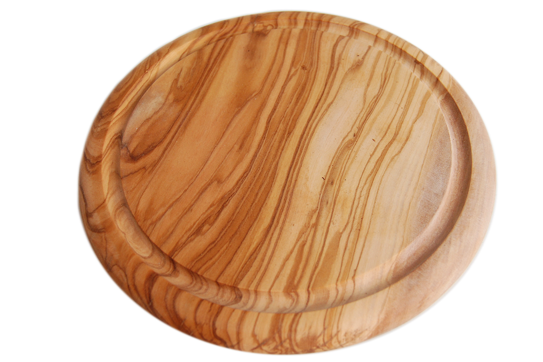 Wiegemesser aus Olivenholz mit zwei sehr scharfen Klingen aus Edelstahl zum Zerkleinern plus einem runden Brett aus Olivenholz Ø 22 cm